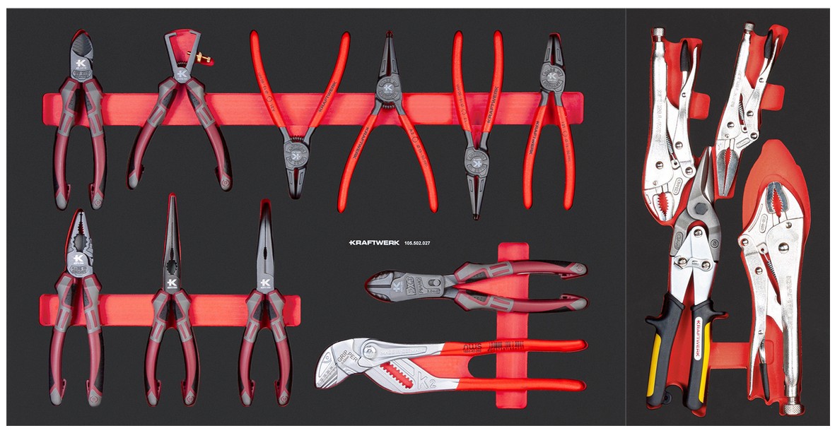 Cisailles à tôle, pinces de préhension et de serrage.