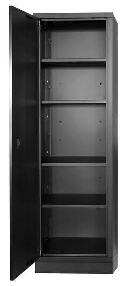 Le cœur du KRAFTWERK MOBILIO 6er combinaison réside dans les nombreux tiroirs et armoires qui permettent une organisation réfléchie de vos outils et accessoires. Le mur d’armoires de 6 éléments dispose de 4 armoires supérieures avec assistance à gaz, garantissant une ouverture et une fermeture faciles. Deux grandes armoires hautes avec quatre étagères offrent un espace de rangement supplémentaire pour les objets encombrants, tandis que le meuble bas à deux portes crée de la place pour des outils et matériaux plus grands. Toutes les armoires sont en noir moderne.