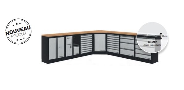 Mobilio 7 éléments comb, meuble bas, meuble d’angle avec 2 choix de plan de travail :